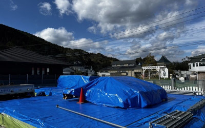 窓部分も開口して、ブルーシートで覆われていた室内が明るくなりました。