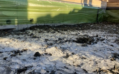 よく現場を見渡すと、、水たまりに氷がはってました❄