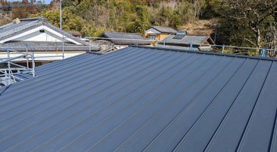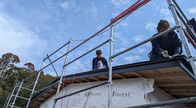 そして家の外では、青い空のもと、作業をする板金屋さん達。 美しい屋根を施工してくれていました。