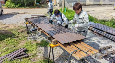 和やかな雰囲気のお昼がおわり、午後からは屋根を仕上げていきます!