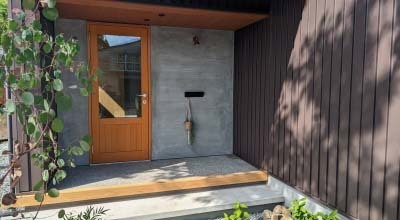 エントランスは少し小さめの木で囲み、木々の間を通って玄関へ入れるように。