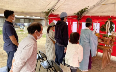 10月吉日。 『hang out』は晴天の中、地鎮祭を行いました。