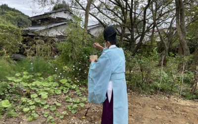 最後にご夫婦で四隅を清めて、地鎮祭を終えました。