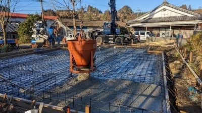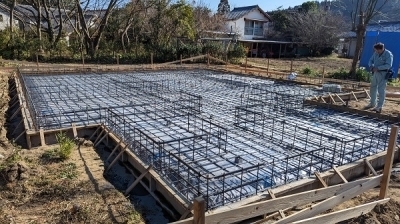 正確に出した基準墨を、これまた正確に追いながら作業が進みます。 床掘りから砂利敷…そして鉄筋組。 連日の寒波の襲来をものともせずに作業を進めてくれました!