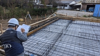 そしてむかえた第三者機関による鉄筋の検査。 こちらも何度も確認を行った作業ではありますが、それでも緊張して待ちます。