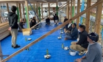 2月吉日、『hang out』の棟上げを行いました !