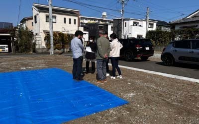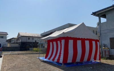 先日までの寒さも吹き飛ぶあたたかな陽気の中、地鎮祭が始まります。