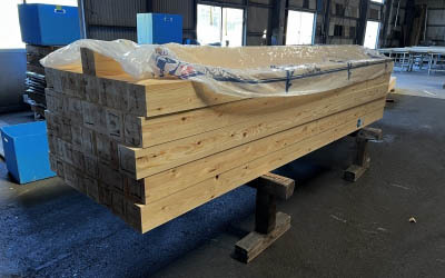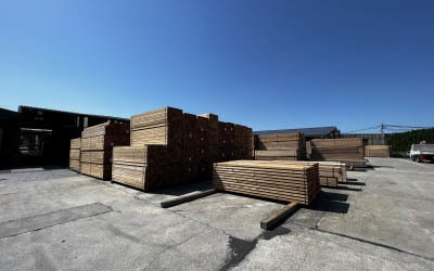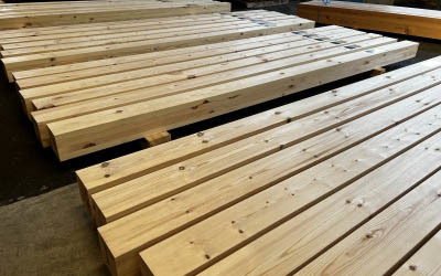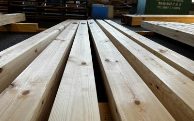この柱や梁は、番付け作業により4面の見え方にもこだわったもの。 建物ができあがった後も、リビングやキッチンなどの各部屋に存在するので 製材所にてじっくりと選んできました。