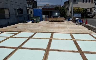 もちろん適合判定をいただきました(^^) そして底盤・立ち上がりの順番にコンクリートの打設。