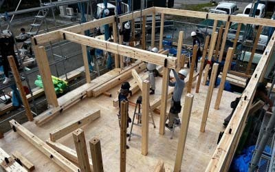 土地のお清めと工事の安全祈願を終えたHOUSE YKM。 現場着工!の前に、大切な『番付』工程へ。