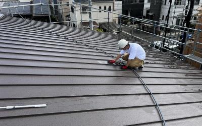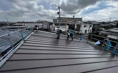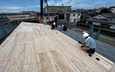 梅雨時期の晴れ間をぬって屋根工事を行いました。