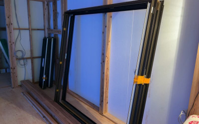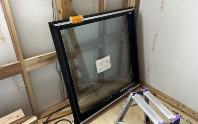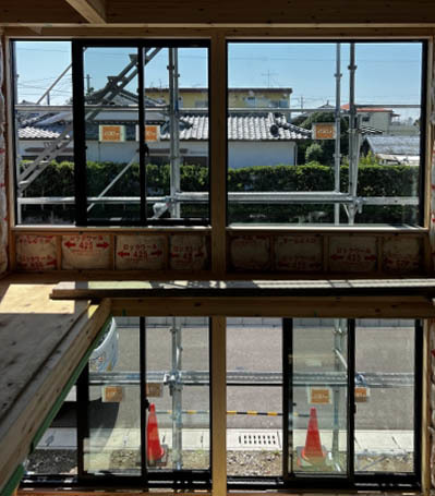 そして玄関ドアも設置し、全てのサッシ取付が完了です!