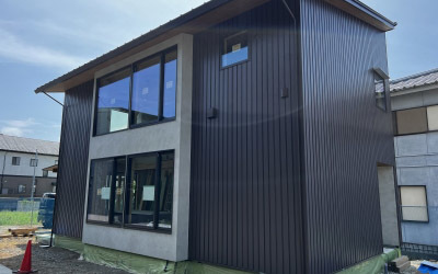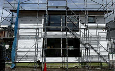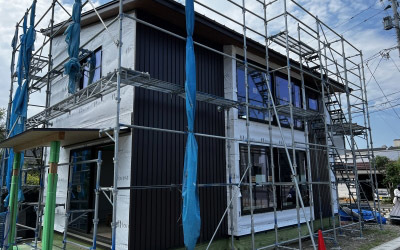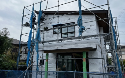内部の仕上げ工事も順調に進む中、いよいよ外壁張りの工程へ。