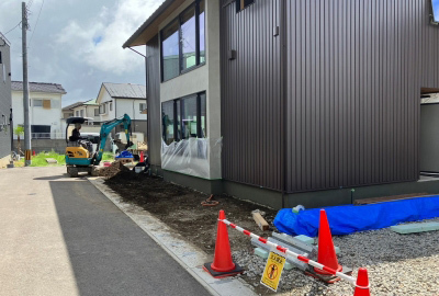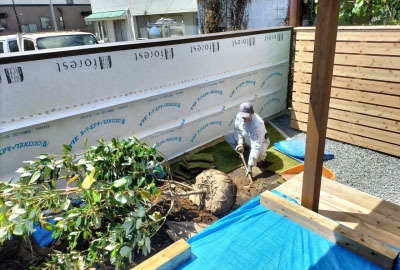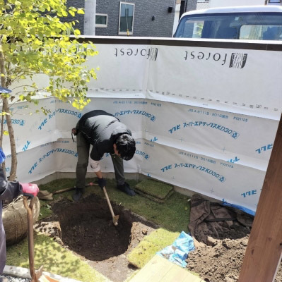 樹木を植えるための穴掘り、大きいものになってくるとなかなか大変ですが、 居心地の良い空間づくりとお施主様の感動を目指して...