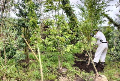 四季を感じることのできる落葉樹、目隠しの役割も担ってくれる常緑樹を バランスよく配置できるよう、想像を膨らませ一本一本選んでいきます。