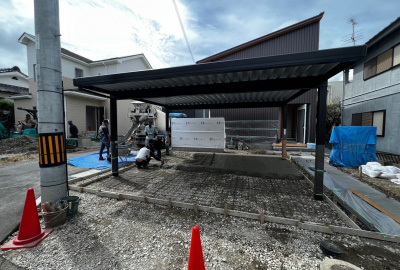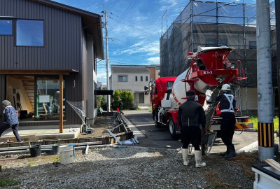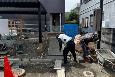 玄関アプローチ・駐車スペースのコンクリート土間打ち。