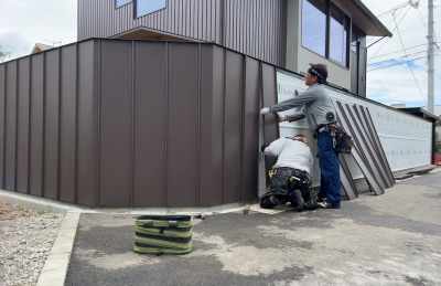 目隠しのガルバ塀の施工...この中にお庭をつくります。