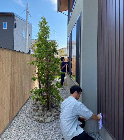 完成お披露目を終えた「HOUSE YKM」の現場にて最後の磨きを行いました。