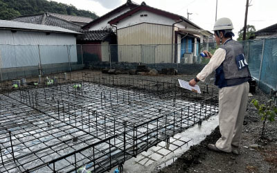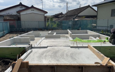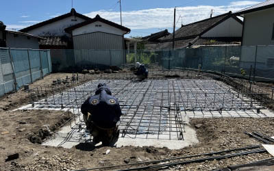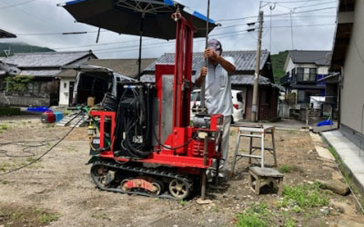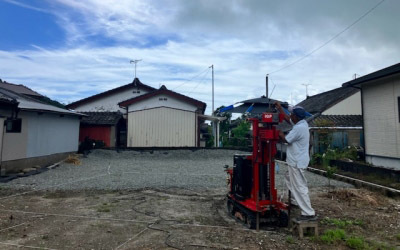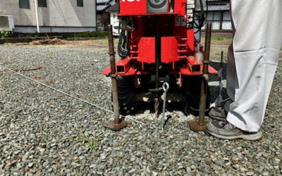 地盤調査とは、お家を建てる敷地が建物を支えるための強度を持っているかを調べる工程。 専用の機械を用いて地盤の強度を計測していきます。