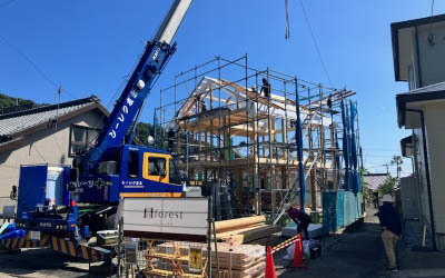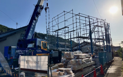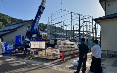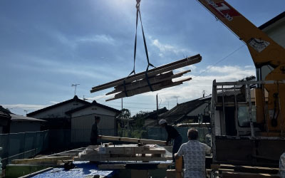 早朝より駆け付けて頂きましたお施主様が見守る中、建て方工事スタートです!!