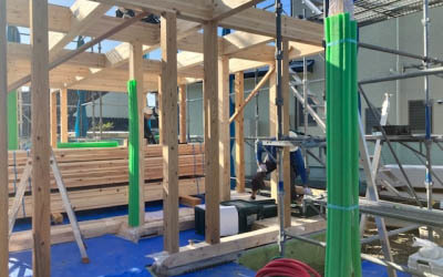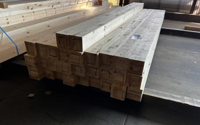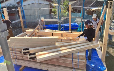 番付を終えた材料たちはプレカット加工後、建て方時に現場で再会します。