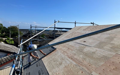 手練れの大工さん達・・・ 丁寧かつ素早い無駄のない動きで工事は順調に進み屋根仕舞いが完了です。