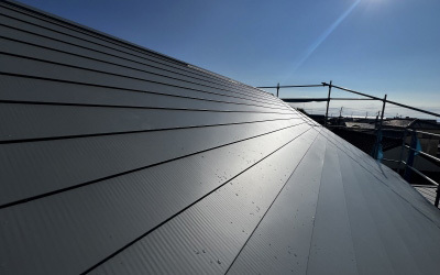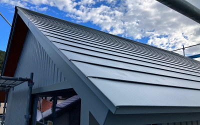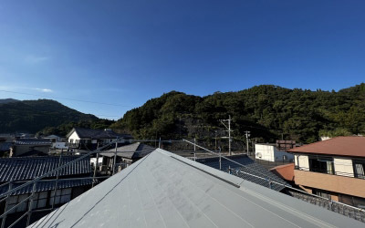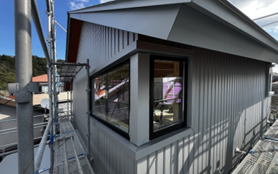 窓や庇、屋根に形に合わせて、現場で一枚ずつ加工を行い、丁寧に納めていきます。