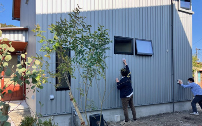 「内海blue」の現場は外構植栽仕上げを残すのみ