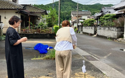 真夏の太陽が調査員の方に容赦なく照り付けますがさすがプロフェッショナル。。