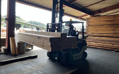 様々な木材が並ぶ中、内海blueの材料たちは・・