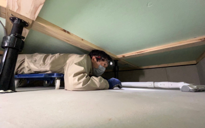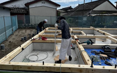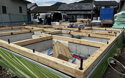 床パネルを敷く前に、基礎内はしっかりと清掃します。