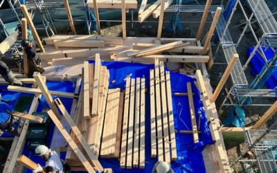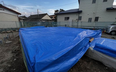 全ての材料をしっかりと養生して、建て方の準備は万端です!!