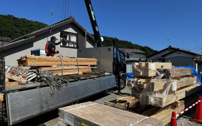 桁材・柱材…それぞれ所定の位置へ配備しておきます。