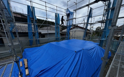 更に厚手のブルーシートで二重に覆い全体をしっかりと守ります。