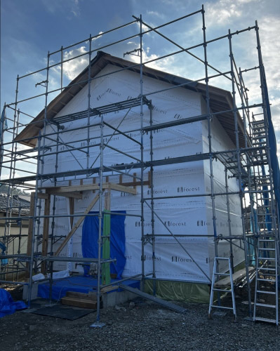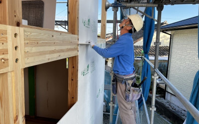 耐力面材で全体を覆い、防水透湿シートで全体をしっかりと保護します。