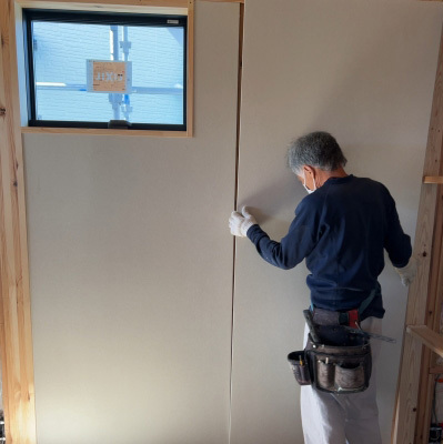 1枚あたり20kg以上もする面材の取付け枚数はなんと約100枚にも!