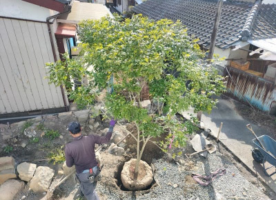 先日山から選抜された木々達が到着し、あらかじめ想定されていた場所へ配置されていきます。