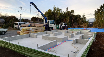 現場「THE ZEN」は基礎工事後、土台敷きの工程へと進みました☀