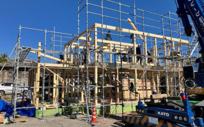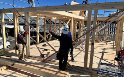 英気を養い午後の部開始です! 棟もあがり順調に工事が進んでいきます。