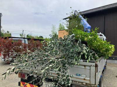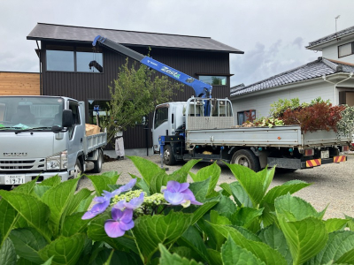 大中小さまざまな種類の植栽をイメージされているところへ配置していきます。