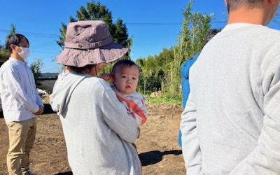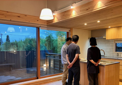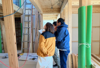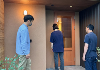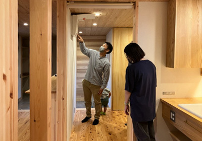 現場を知り尽くすSさんの解説に熱心に耳を傾けるお施主様。