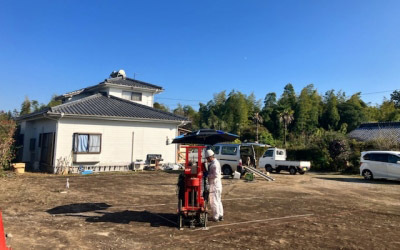 着工前の大切な決まり事である地盤調査をおこないました。