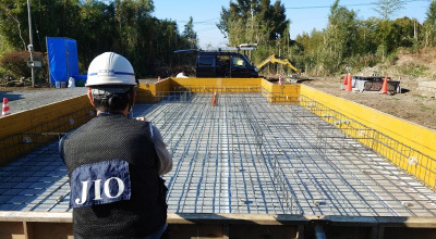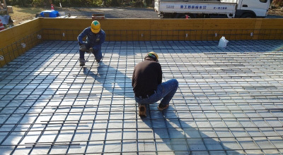 鉄筋組みが完了したら、第三者機関JIOによる配筋検査が行われます。