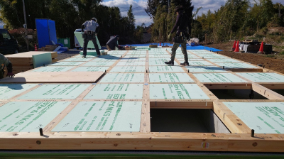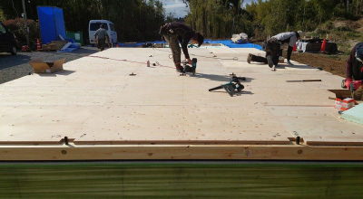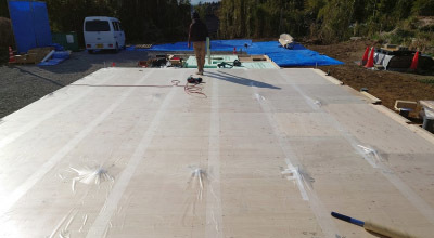 その上から構造用の床パネルを設置します。