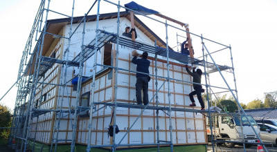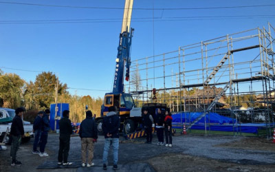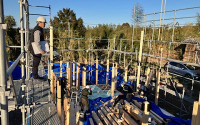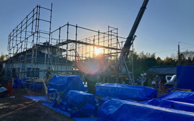 この後、仮設足場を設置して建て方当日をむかえます。