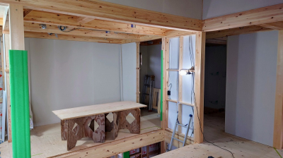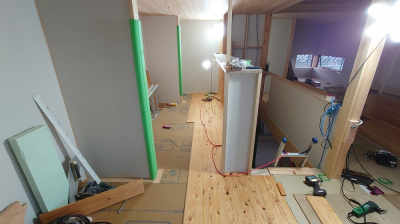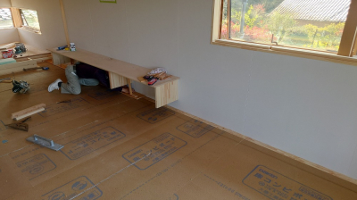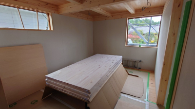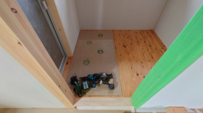 フォレストでは2F床仕上げの前には床下地材を先に貼ります。