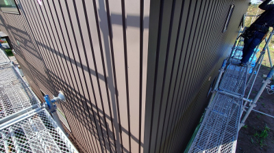 まずは外部ガルバ壁の磨き。