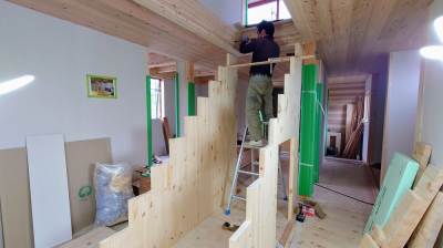 木の家に溶け込むやさしい雰囲気の木製階段。