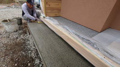 コンクリート打設は底盤部分、立上り部分、玄関ポーチ土間部分の計3回に分けて行われます。