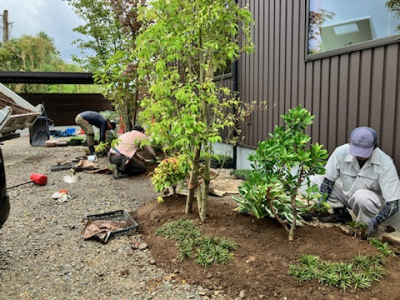 最後の仕上げとなる植栽工事をおこないました。